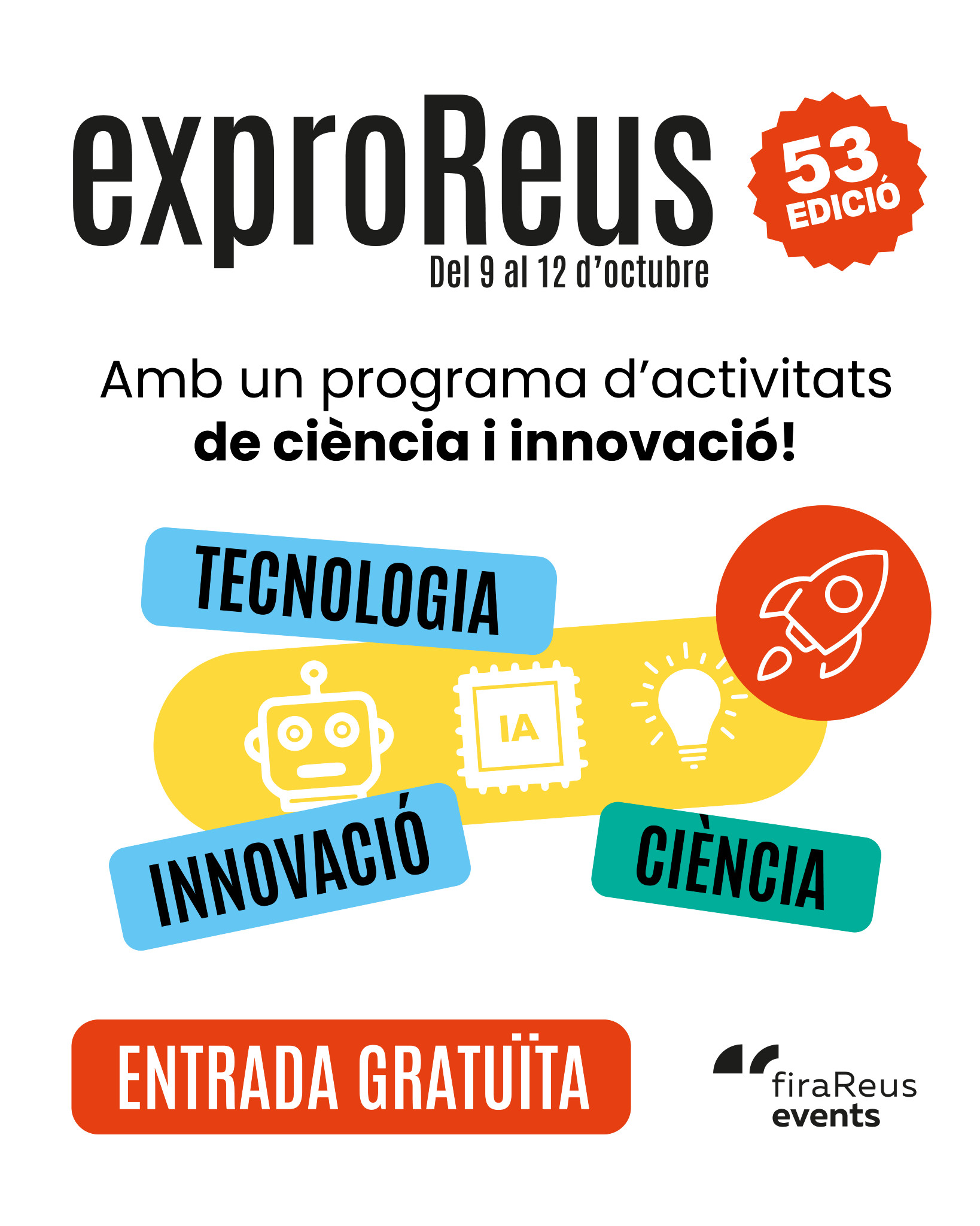EXPROREUS, la Fira multisectorial de referència al territori, arriba enguany a la 53a edició amb un programa d'activitats per a tota la família vinculades a la recent distinció de Reus com a Ciutat de Ciència i Innovació, atorgada pel Ministeri de Ciència, Innovació i Universitats. Aquestes activitats inclouran tallers tecnològics, propostes educatives i espais dedicats a la divulgació científica, pensats per a totes les edats.