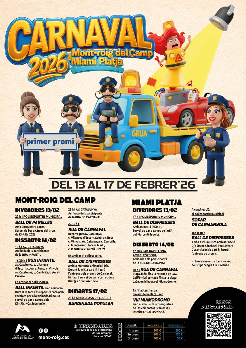 Festzüge, Wettbewerbe, Maskentänze und vieles mehr im Rahmen des Karnevals von Mont-roig und Miami Platja.